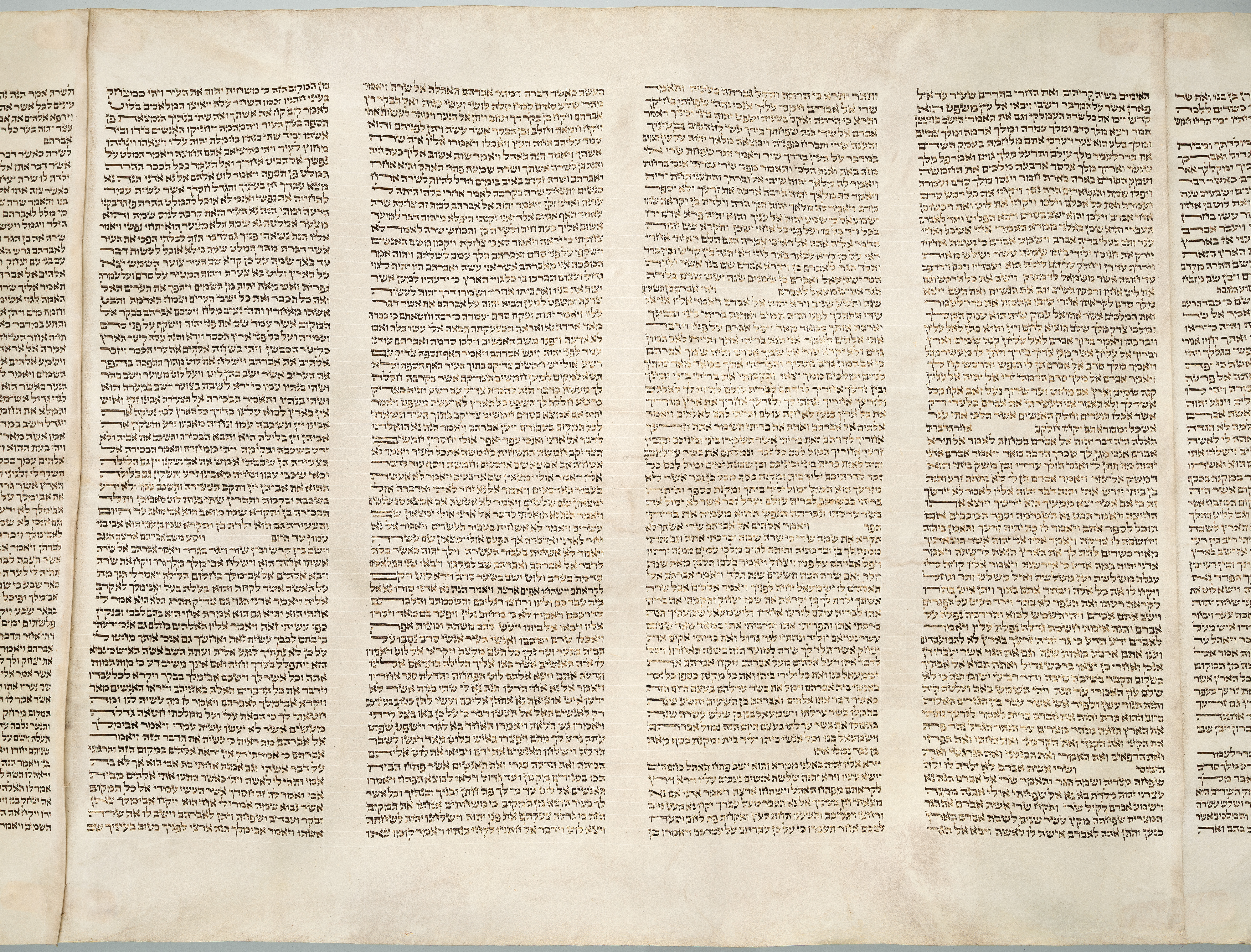 - This Sepher Torah scroll contains the first five books of the Old Testament (Genesis - Deuteronomy) in biblical Hebrew. The scroll was created in Fürth, Germany ca. 1760 and is 91 feet 2 1/2 inches long, approximately 27 1/2 inches wide, and consists of 35 panels of parchment. This scroll (TS.KBL.19.25) was donated to Southeastern Baptist Theological Seminary by Ken and Barb Larsen, founders of God's Ancient Library (https://www.godsancientlibrary.com/). During the reign of National Socialism in Germany, the scroll was buried in the cemetery of a Jewish synagogue to prevent its capture by the Nazi government. The scroll was rediscovered in Germany in the early 2000s and subsequently purchased by the Ben-David family from Israel. The Larsens purchased this scroll from the Ben-David family. Please see Excel file "TS.KBL.19.25 Detailed Analysis" on page four under "Items" for extensive information on the elements of this scroll. The physical scroll is available for use on the campus of Southeastern Baptist Theological Seminary in Wake Forest, NC. Please contact the archives at archives@sebts.edu or 919-761-2329 for more information.